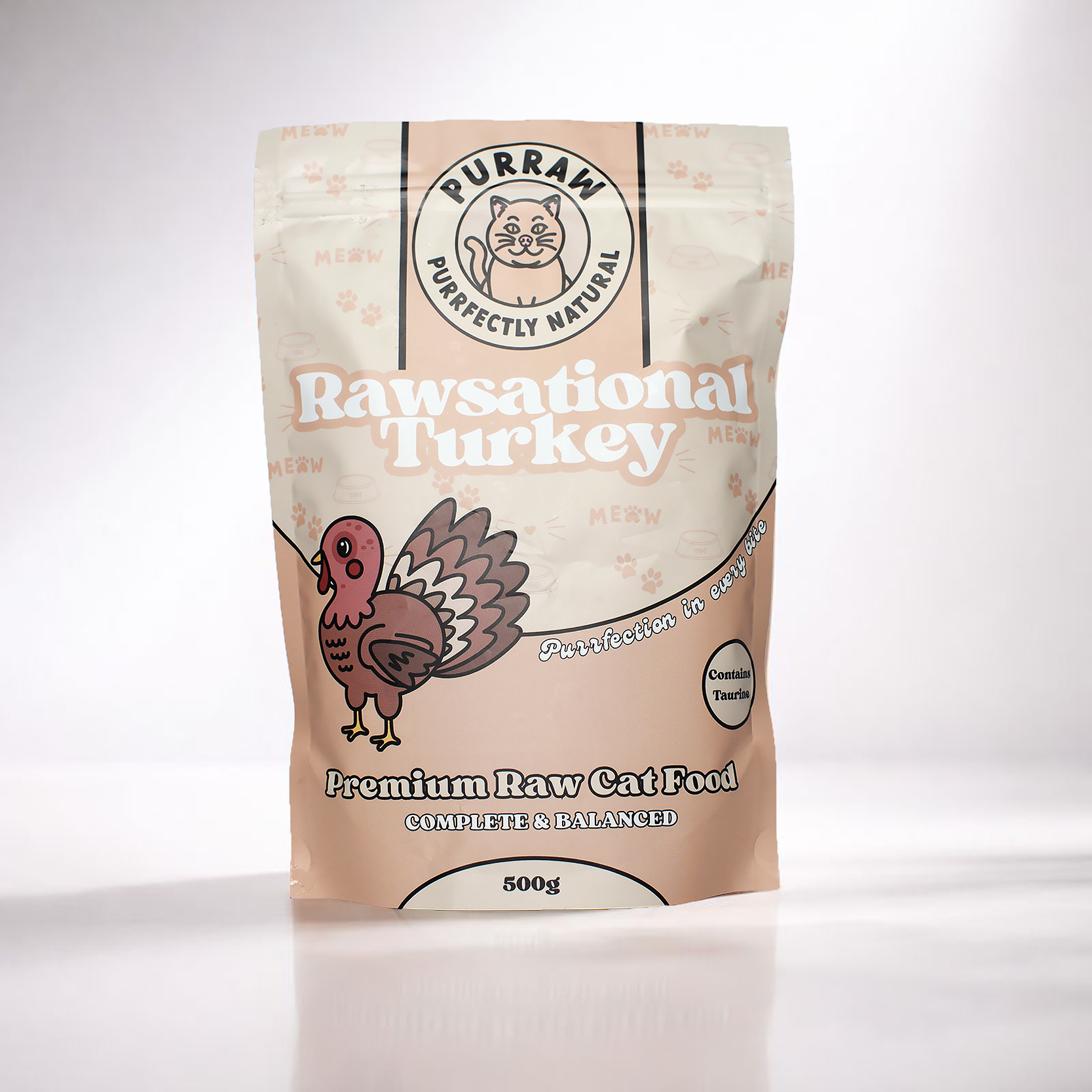Turkey Premium Complete Raw Cat Food 500g for kittens & cats